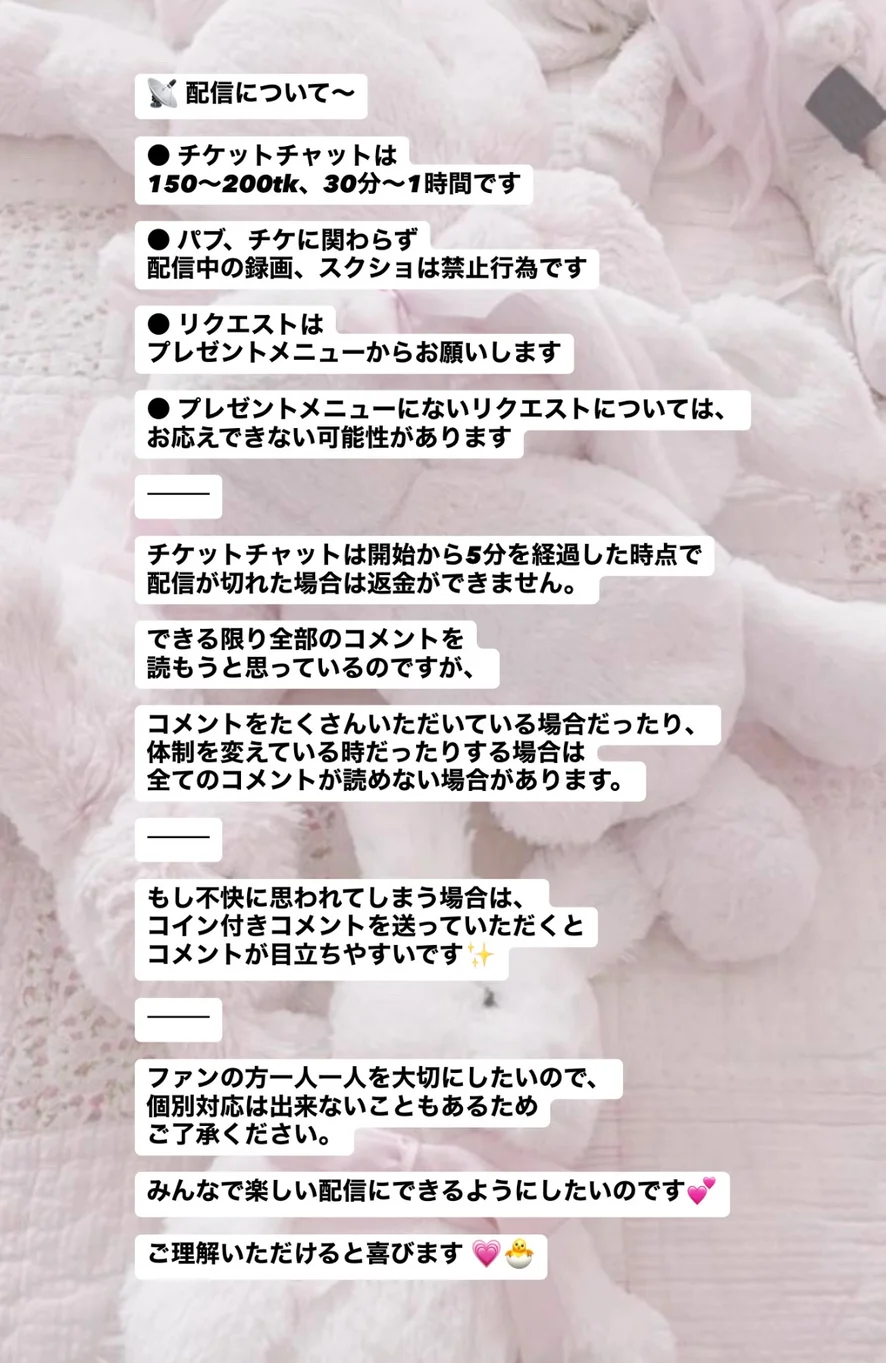 【お願い】「◯◯見たい」「◯◯して欲しい」「◯◯お願い」等のコメントはやめてあげて下さい。必ずプレゼントメニューからお願いします。 【Please】Please refrain from making comments such as "I want to see ◯◯", "I want you to do ◯◯", "◯◯ please", etc. Please be sure to choose from the present menu.